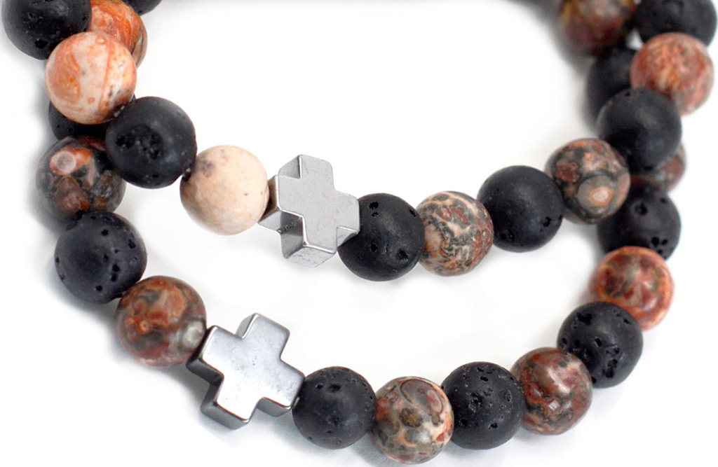 Karako komplet 2 zapestnic – leop. jaspis, vulk. kamen – krog.8 mm
