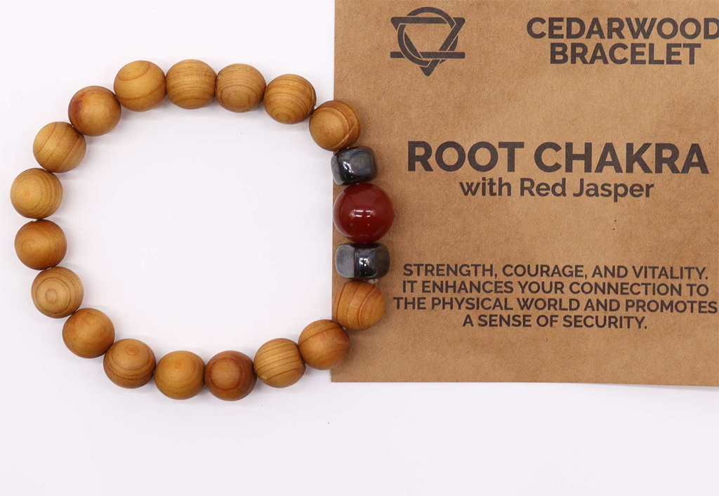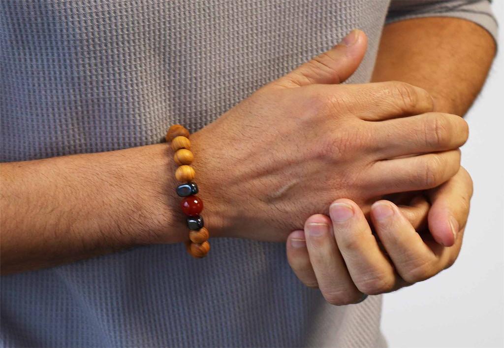 – material: cedra, naravni kamen citrin in hematit, elastična vrvica
