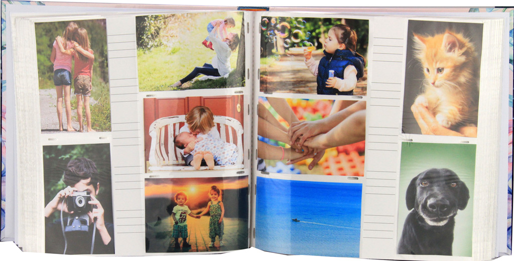 V vložni album z memo prostorom lahko shranite 500 fotografij dimenzije 10×15. Slike vložite v plastične žepke v fotoalbum. Vsaka stran ima memo prostor, kamor vpišete spomine.