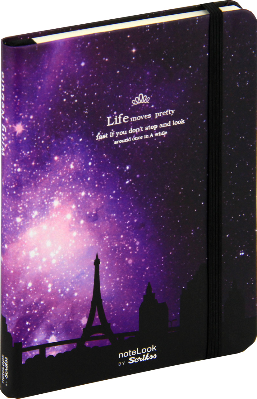 Notes – beležka s trdimi platnicami in elastiko za zapiranje ima 100 črtastih listov krem barve. Velikost zvezka je 11×15,5 cm, gramatura papirja je 80 gsm. Vsebuje tudi tekstilno kazalo.