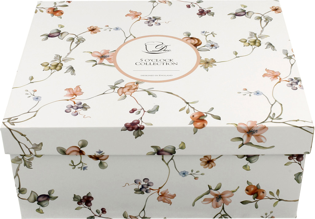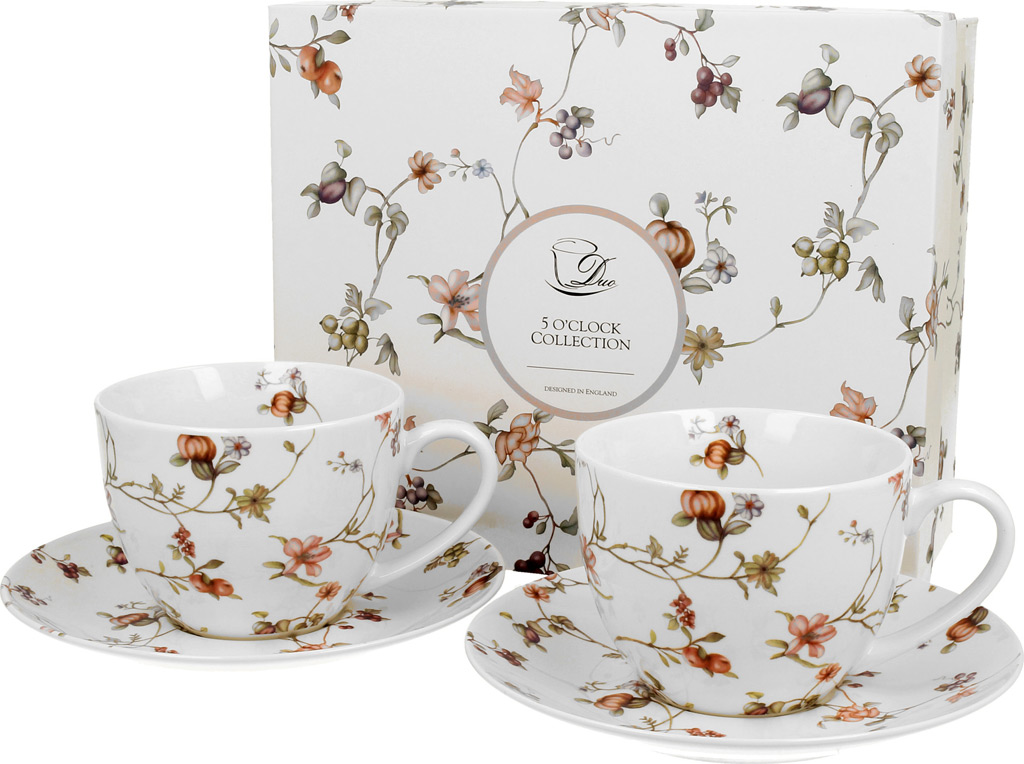 Eleganten set 2 skodelic in krožničkov za kavo ali čaj. Prikupni cvetni motiv Safa. Porcelan, 250 ml. Lična embalaža, nadvse primerna za darilo.
