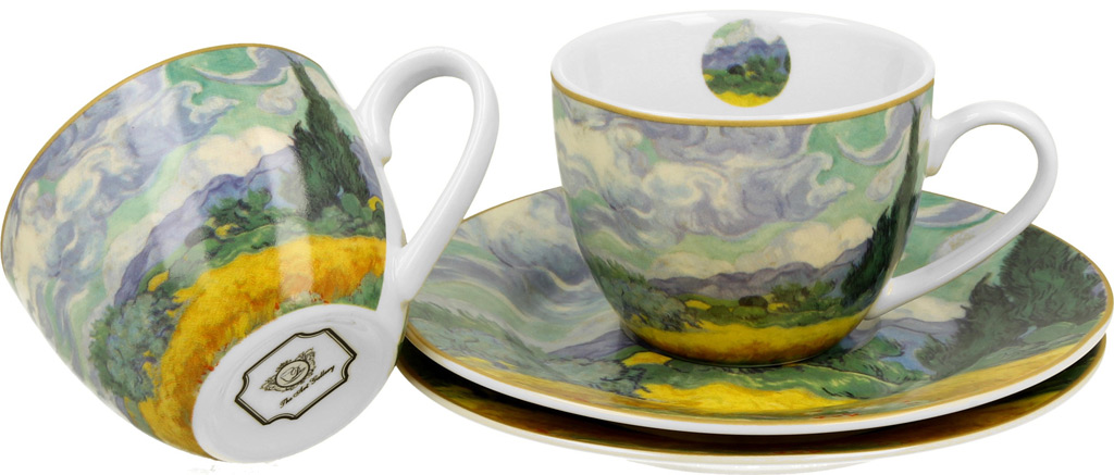 Set dveh skodelic in krožničkov iz linije Pšenično polje (Van Gogh), 90 ml, porcelan, 5926