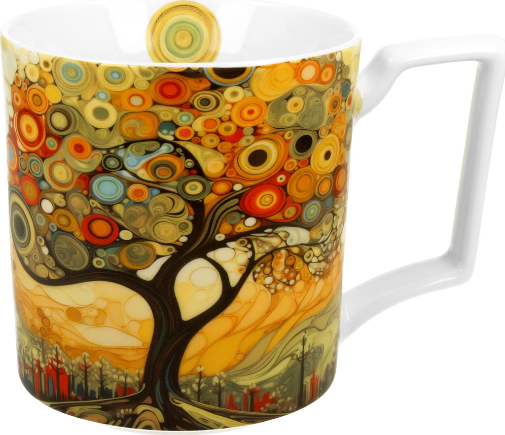 Elegantna skodelica iz porcelana za kavo ali čaj. Klimtov motiv Drevo v moderni preobleki. Porcelan, 750 ml. Lična embalaža, nadvse primerna za darilo