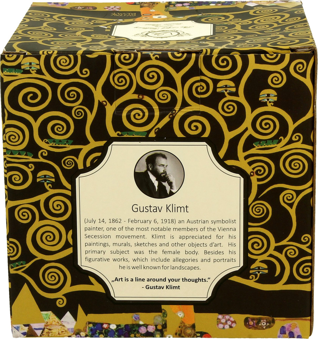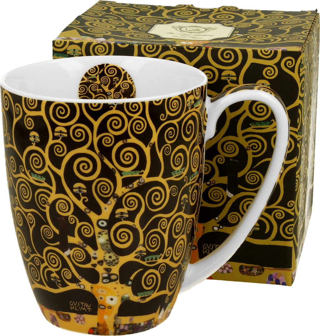 Elegantna skodelica iz porcelana za kavo ali čaj. Priljubljen motiv Drevo življenja priznanega umetnika Klimt. Porcelan, 380 ml. Lična embalaža, nadvse primerna za darilo.