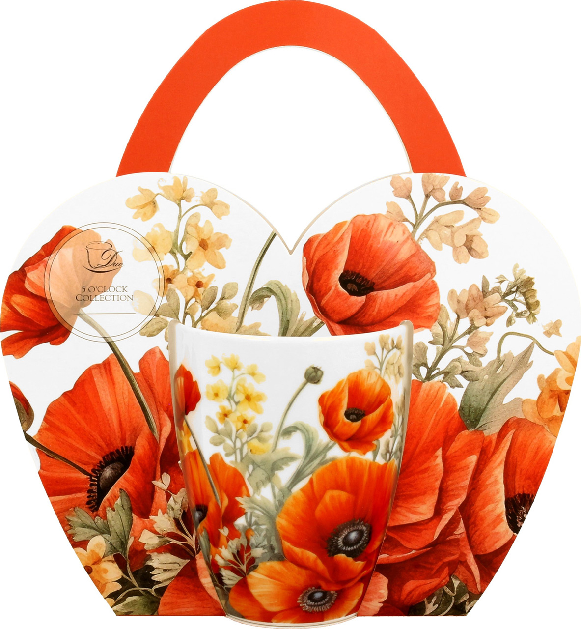 Elegantna skodelica iz porcelana za kavo ali čaj. Priljubljen motiv makovih cvetov. Porcelan, 360 ml. Lična embalaža, nadvse primerna za darilo