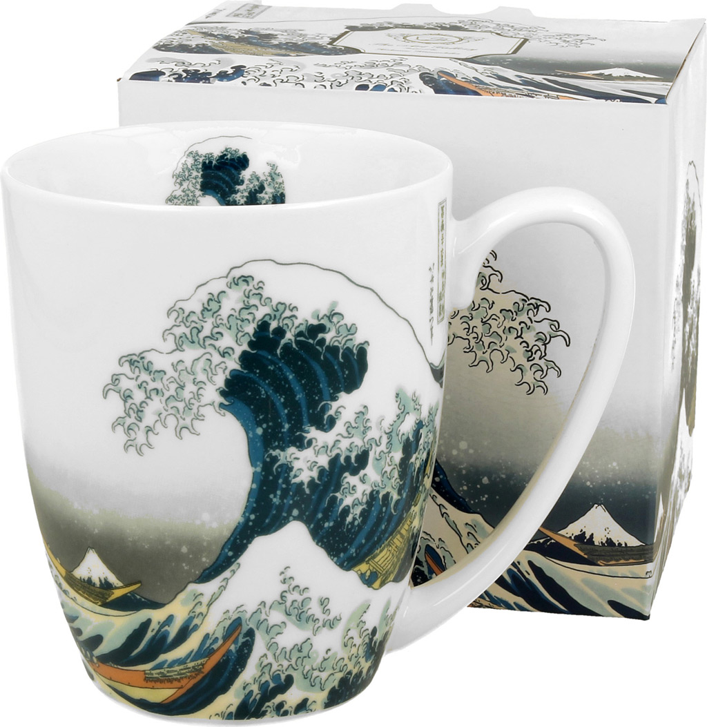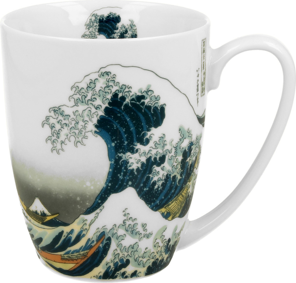 Elegantna skodelica iz porcelana za kavo ali čaj. Priljubljen motiv Veliki val priznanega umetnika Hokusai. Porcelan, 360 ml. Lična embalaža, nadvse primerna za darilo.