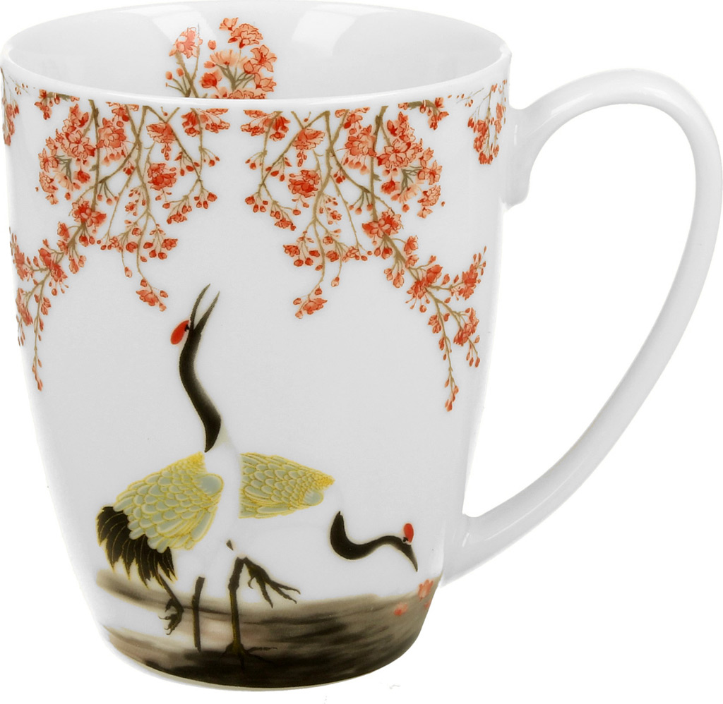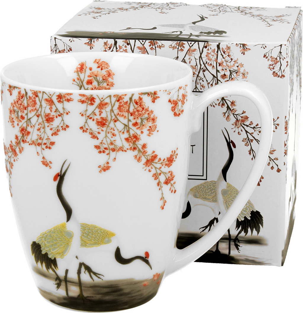 Elegantna skodelica iz porcelana za kavo ali čaj. Moderni japonski motiv Žerjav. Porcelan, 380 ml. Lična embalaža, nadvse primerna za darilo.