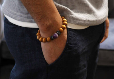 Lesena zapestnica – cedra in ametist – kroglice 10 in 12 mm