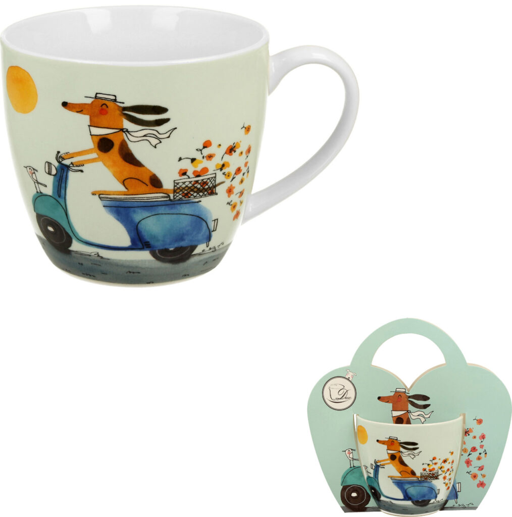 Skodelica Kuža na skuterju, 460 ml, porcelan, v lični darilni embalaži, 3838
