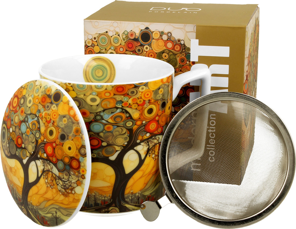 Skodelica+pokrov+cedilo Magnolija, 430 ml porcelan, darilna embalaža, 4378