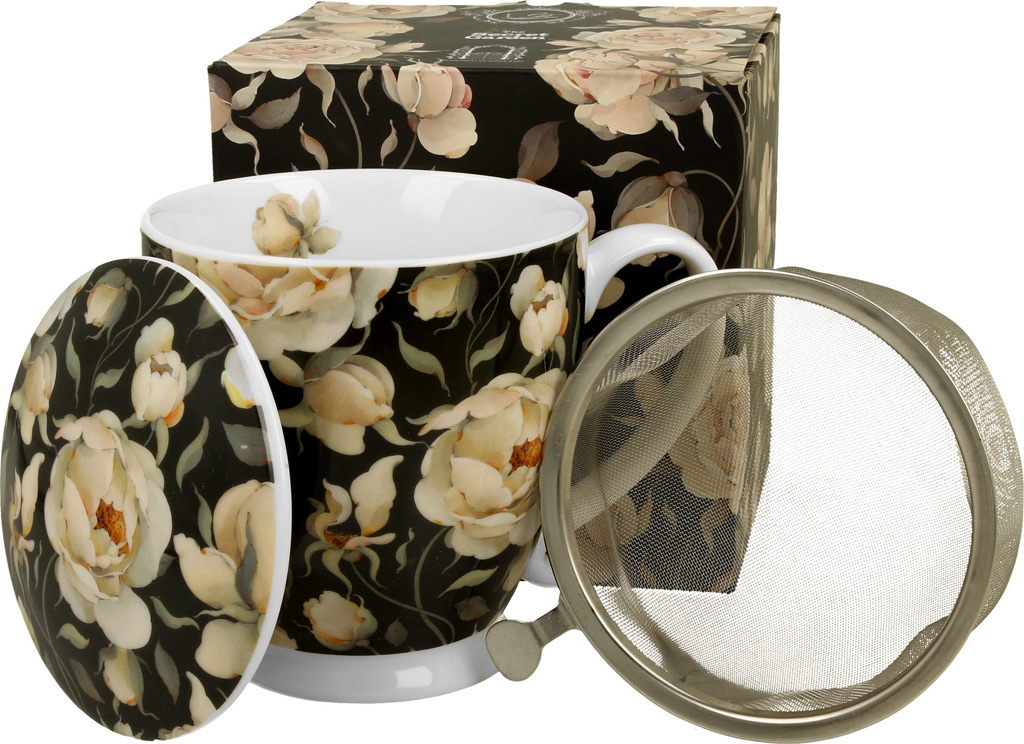 Skodelica+pokrov+cedilo Vrtnice, 510 ml porcelan, darilna embalaža, 9527